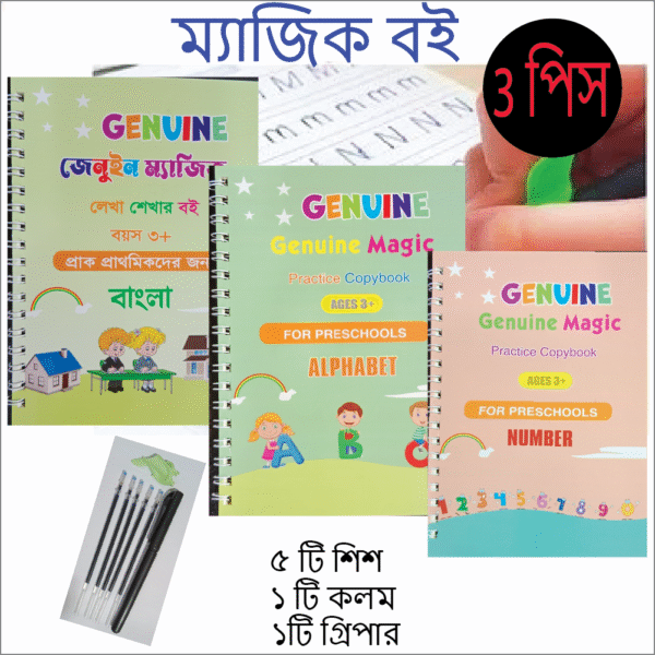 3 PCS Kids Magic Handwritting Practice Book (Bangla,English & Math)